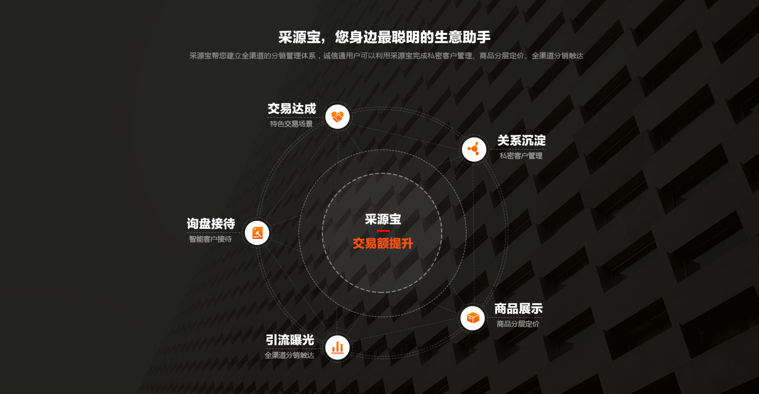 采源宝帮您建立全渠道的分销管理体系,诚信通用户可以利 用采源宝完成私密客户管理、商品分层定价、全渠道分销触 达、智能客户接待。